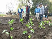 4月21日に、ボランティアさん達と野菜の苗を植えました。