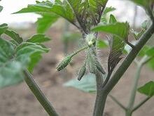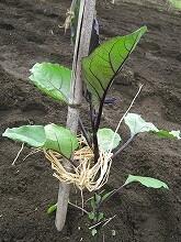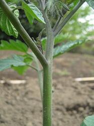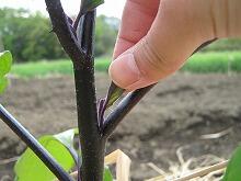 くきの間から小さい「わきめ」が生えています。わきめはぬくと、大きなくきにえいようがいきます。ほかのやさいのわきめもぬきます。