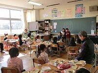 会の後には、各教室に分かれてボランティアさんと会食をしました。楽しく会話しながら食べた給食はとてもおいしかったです。