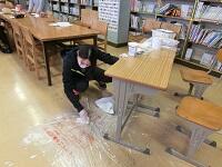 ノロウイルスなどの集団感染予防に欠かせない嘔吐物処理について、普段のやり方を振り返り、内科学校医の橋本先生からアドバイスをいただきながら改善点について話し合いました。