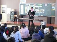 県民生活部くらし安全課の方をお招きし、低・中・高学年それぞれ1時間ずつ、交通安全教室を実施しました。クイズに答えたり、自転車シミュレーターによる「正しい自転車の乗り方」を体験しながら、危険な場面でどうすればよいのかをしっかりと学ぶことができました。新たに気づくこともあり、全校児童の交通安全への意識がさらに高まりました。