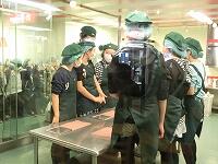 消防署の方の仕事についてのDVDを見た後、煙体験、庁舎見学、車両見学をしました。
