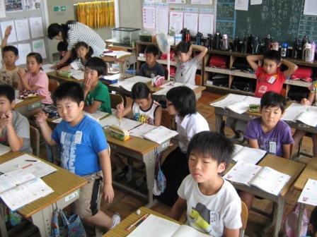 7月17日、4年生は3年生を教室に招待し、総合学習の発表会を開きました。内容は、5月に行ってきた宿泊学習についてまとめたものでした。来年度3年生が行くことになるので、参考にしてもらうために、開いた発表会でした。自然の家で体験してきた火起こしやナイトハイキング、大中寺の七不思議についてなど、3年生に分かりやすく、楽しく説明してくれました。