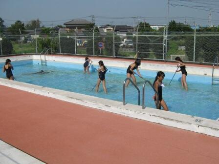8月29日、運動委員会と有志の子供たちで、プール清掃を行いました。2学期はじめの水泳指導で、気持ちよくプールが使えるよう毎年行っているものです。水の入れ替えもします。きれいになったプールで水泳ができますね。