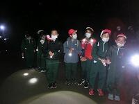 真っ暗の山道を砂浜まで、懐中電灯の明かりをたよりに歩きました。みんなで歩けば、暗闇の怖さは