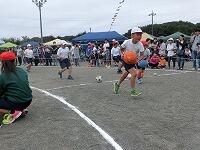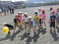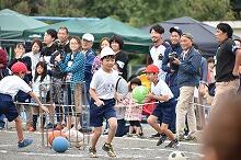 障害走「どちらのボールでショー?」では、くじで選んだボールを持ち、かごに入れてゴールを目指して一生懸命がんばりました。