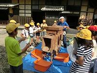 子どもたちも興味津々で、刈り取った稲がどうなっていくのか、見ていました。