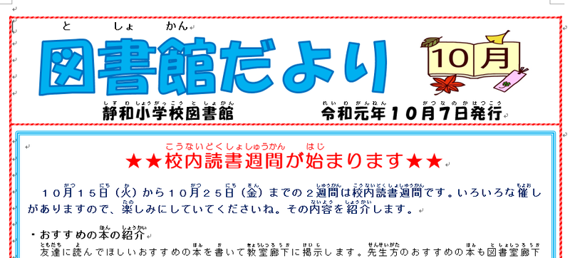 静小の10月のテーマは、「勉強」「読書」「遊び」。