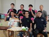完成したランプシェードにライトを灯します。それぞれお花紙の色や貼り方が違うので、味があって、とてもいい作品になりました。ぜひご家庭でも鑑賞していただければと思います