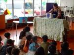 今の季節にピッタリの話や授業で習った話を本ではなく、BOXシアターやエプロンシアター・ブラックパネルシアターで聞きました。