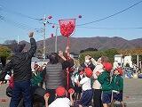 4年生が作った気球が宙に舞うと子どもたちは大喜び!