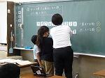 6年生の算数の授業です。分数のかけ算について、真剣に考える姿が見られました。
