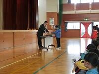 2時間目、1年1組では、道徳の授業「あいさつ」という題材で、礼儀についての学習をしていました。大型テレビをモニターとして利用し、考えるポイントを分かりやすく説明した後、ロールプレーを行いながら、「やさしく、大きな声で、明るく、笑顔で、目を見て・・・」とあいさつのポイントを考えることができました。1年2組は、算数で、時計の見方の勉強をしていました。模型を使って時計の読み方を学習した後は、友だちと問題を出し合いながら、楽しく学習していました。