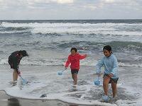一日目午後は、砂浜で砂の造形を行いました。みんなで波打ち際で遊んだり、協力して砂の造形を行ったりと、とても楽しい時間となりました。夜は、岩舟地区の各小学校の5年生と交流活動を行いました。