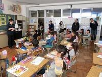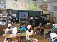 2月の終わり頃、昼休みに保健委員会の5年生、6年生が、1年生と2年生、個別学級の教室に出向き、正しい手の洗い方指導を行いました。