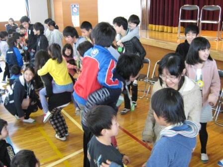 3月6日、6年生企画のフレタイがありました。6年生が企画した遊びは、「もうじゅうがりドロケイ」でした。グループを作れなかった子どもたちを、「ケイ」の5年生がつかまえるというゲームでした。6年生とグループを作りながら、全校生が楽しく交流しました。最後には、また6年生たちが楽しいパフォーマンスを見せてくれました。楽しい思い出ができました。