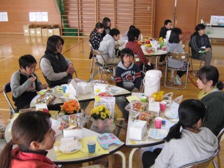 1月28日、給食週間の行事の一つとして、3年生と4年生のふれあい給食が行われました。プレイルームに集まった子どもたちは、楽しそうに会食の時間を過ごしました。