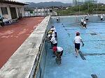 6月中旬からのプール指導に向けて今日はプール清掃を行いました。事前にプールの工事が行われたこともあり、今回は6年生のみの清掃となりました。