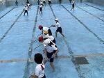 後半の、玉投げゲームでは相手コートに必死に玉を投げ入れる姿が見られ、