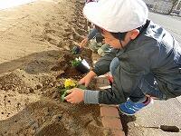 今日は、3年生が学校の花壇にパンジーを植えました!