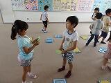 音楽では「どうぶつラップ」をして盛り上がりました。グループの友達やクラスの友達と、どうぶつの鳴きまねでよびかけっこをしました。ゆっくりになったり、はやくなったり・・・リズムを刻んで笑顔いっぱいの時間でした。