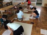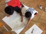 初めての模造紙に、わくわくしながら一生懸命取り組んでいます。