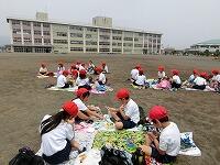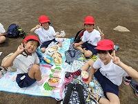 遠足気分を味わいながら、校庭で愛情たっぷりのお弁当を食べました。