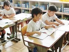 今日の国語は、1年生で習った漢字を使っての文づくりです。