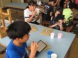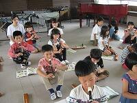 和太鼓体験教室では、みんなで力を合わせて曲を完成させました。