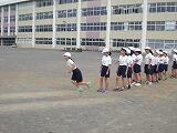 27日(月)、6年生が1年生のシャトルランの手伝いをしました。