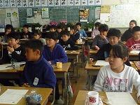 2月20日、岩舟中の栄養教諭・大竹先生にお越しいただき、4年生で食育の授業を行いました。テーマは「かむこと」で、「よくかむことにより、どんな良いことがあるのか」を考える授業でした。実際に大豆を噛むことで、5回噛んだときと30回噛んだときの唾液の様子や、味、口の中の大豆の変化などの違いを確認しながら、「かむことのよさ」について話し合いました。そして、「胃の働きを助ける、のどに詰まらない、むし歯を防ぐ、脳の働きをよくする、食べ過ぎない…。」ということを学びました。 早速、今日の給食から、「かむ」ことを意識して食べていました。大竹先生、本当にお世話になりました。