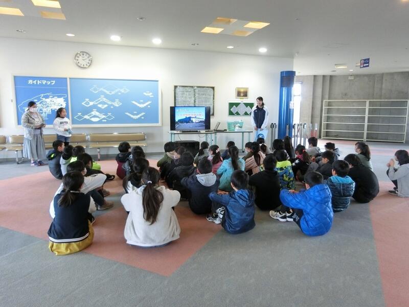宝探しゲームで・・・ 浮島リレーで・・・ 館内の海の展示館見学