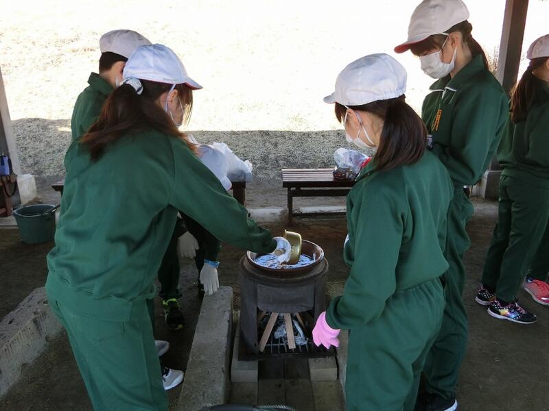 海水を入れて・・・・・ 点火して・・・・・ 丁寧にごみを取って・・・・・ みんなで協力!