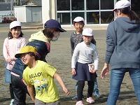 2年生、晴天のグラウンドで外国語活動の授業を楽しむ!