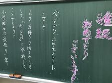 卒業まで学校での生活は残り16日、6年生と一緒に過ごせる残り少ない時間を大切にしたいです。そして、6年生には有終の美を飾り中学校でも頑張っていただきたいと思います。また、在校生には、6年生の姿をしっかりと心に刻み、静和小のよき伝統を引継ぎ頑張ってほしいです。