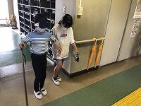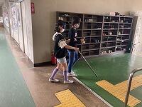 子どもたちは「何も見えなくて怖かった」、「杖や点字ブロックの大切さがよく分かった」などの感想をもち、それぞれの立場を考えながら体験することができました。