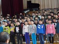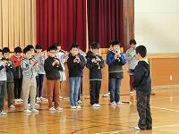 今回は、始めに1年生と4年生の発表がありました。1年生は、「アイアイ」を元気に歌いました。また、4年生は、「アラホーン パイプ」と「ラ クンパルシータ」を木琴と、笛、鍵盤ハーモニカなどで演奏しました。そして、最後に、みんなで「栃木市民の歌」を歌いました。