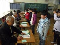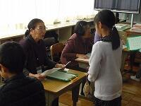 子どもたちは、ふれあい館の方々に自分たちの頑張りを聞いていただこうと、目標を持って一生懸命かけ算九九を覚えました。ボランティアの皆様には、「5・6の段コーナー、・・・ 」のように、それぞれ九九のコーナーを担当していただき、合格した子にはシールを貼ってもらいました。担任一人で行う授業と違って、たくさんのコーナーで次々と合格の段を増やし、すべての児童が1~9のすべての段に合格することができました。中には、各段の九九を3回ずつ合格した児童もいました。ふれあい館の方のやさしい言葉かけに、子どもたちのやる気はいつも以上に高まり、楽しみながら意欲的に学習していました。授業の終わりには、お礼の気持ちを込めて、 「 森のたんけんたい 」の歌を元気に歌いました。ふれあい館の皆様、本当にありがとうございました。