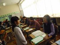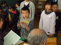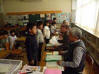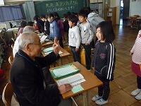 子どもたちは、ふれあい館の方々に自分たちの頑張りを聞いていただこうと、目標を持って一生懸命かけ算九九を覚えました。ボランティアの皆様には、「5・6の段コーナー、・・・ 」のように、それぞれ九九のコーナーを担当していただき、合格した子にはシールを貼ってもらいました。担任一人で行う授業と違って、たくさんのコーナーで次々と合格の段を増やし、すべての児童が1~9のすべての段に合格することができました。中には、各段の九九を3回ずつ合格した児童もいました。ふれあい館の方のやさしい言葉かけに、子どもたちのやる気はいつも以上に高まり、楽しみながら意欲的に学習していました。授業の終わりには、お礼の気持ちを込めて、 「 森のたんけんたい 」の歌を元気に歌いました。ふれあい館の皆様、本当にありがとうございました。