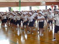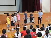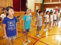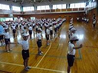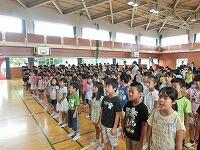 子どもたちは、校長先生のお話を聞きながら、1学期にがんばったことやできるようになったことを振り返りました。また、充実した夏休みを過ごすために、「自分の目標を目指して積極的にチャレンジすること・事故や病気に注意して、規則正しい生活をすること」というお話がありました。その後、2年生と5年生の代表児童が1学期を振り返っての作文発表をしました。最後に、6年生のピアノ伴奏に合わせて校歌を元気に歌いました。式終了後は、児童指導担当から夏休みの生活についての約束事の確認がありました。