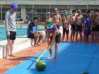 練習初日の今日は、バタ足、クロール、平泳ぎなど、自分の選択したコースに分かれて練習しました。子どもたちは、「25m泳げるように練習するぞ!平泳ぎができるように頑張ります!」などと、それぞれが自分の目標に向かって元気いっぱい頑張っていました。この後も、自分の決めた目標に向かって積極的にチャレンジして、充実した夏休みになることを願っています。