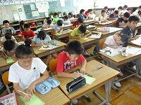 その後、1学期同様、時間を計りながらの「100ます計算」、続いて、各学年に合わせた算数のプリントを行いました。終了した児童は、各自が用意したドリル等を行いました。子ともたちは、プリントやドリルに集中して取り組み、分からないところは静かに手を挙げて、指導の先生に質問していました。2学期も、学力の向上を目指して頑張りましょう。