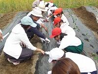 1 年生 さつまいもの苗植えに挑戦!