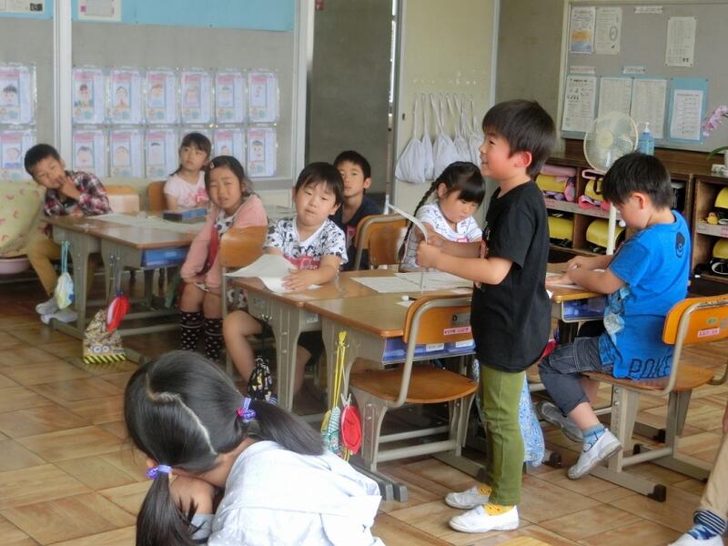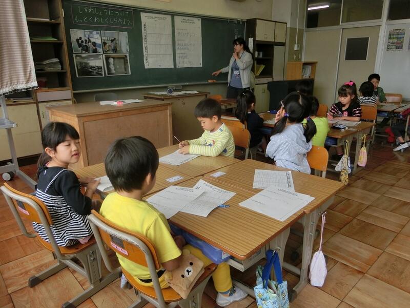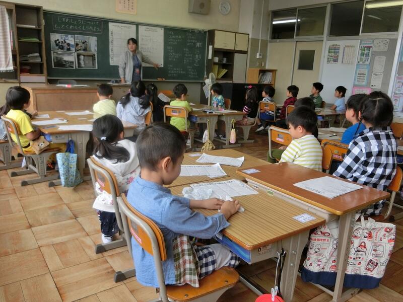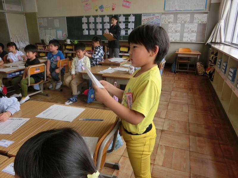 次の時間は、教室への入り方やお礼の言い方、インタビューの仕方などを学習します。1年生も学校生活に慣れ、学習も充実してきました。