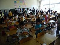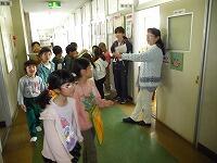 5月10日(木) 生活科の時間を利用して、2 年生による「1年生への学校案内」が実施されました。 始めの会では、1年生もしっかりと挨拶することができました。その後、グループに分かれて自己紹介を行い、学校案内が開始されました。各階を移動し、理科室などの特別教室や校長室、職員室、玄関などを案内しました。終わりの会では、1年生は、2年生からあさがおの種のプレゼントをいただき、とても嬉しそうでした。そして、2年生にしっかりとお礼を言って、楽しい時間が終了しました。