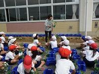 ふれあい館の方々による学校の畑の苗植え準備作業に感謝!