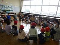 今回は、なかよし班の顔合わせということで、班ごとに自己紹介をしてから集合写真を撮りました。その後、教室でなかよし班ごとに、フルーツバスケットや爆弾ゲームなどのゲームで楽しく遊びました。