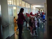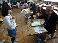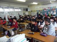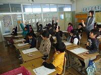 子どもたちは、ふれあい館の方々に自分たちの頑張りを聞いていただこうという気持ちで、目標を持って一生懸命かけ算九九を覚えてきました。ボランティアの皆様には、「6の段・コーナー、・・・ 」のように、それぞれ九九のコーナーを担当していただき、合格した子にはシールを貼ってもらいました。担任一人で行うのと違って、次々と合格の段を増やし、すべての児童が1~9のすべての段に合格することができました。中には、各段の九九を3回ずつ合格した児童もいました。子どもたちのやる気はいつも以上に高まり、楽しみながら意欲的に学習していました。授業の終わりには、お礼に 「 朝のリズム 」の歌を元気に歌いました。