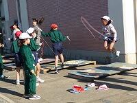 先週はインフルエンザ蔓延防止のために中止となったので、本日が今年度の第1回目でした。体育の授業などでは、すでに練習がスタートしているので、1年生もしっかりと跳ぶことができていました。天候にも恵まれ、穏やかな青空の下、子どもたちは、楽しそうに一生懸命、縄跳び練習を行っていました。また、2時間目終了後の休み時間や昼休みも、意欲的に縄跳び練習する姿が見られました。