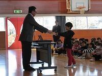 始めに子ども達と「為せば成る、チャレンジの2学期」を振り返りました。大きな行事がたくさんありましたが、その一つ一つを節目として子どもたちはたくましく成長することができました。その後、3年生と6年生の代表児童より、めあてを持って取り組んだ自主学習や頑張った持久走大会での達成感などについての作文発表がありました。終業式の後は、児童指導の先生による冬休みの生活についてのお話が、続いて、持久走大会等の表彰がありました。